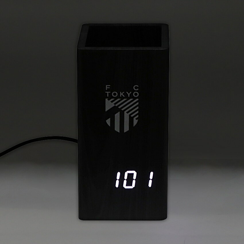 スタイリッシュな木製LEDクロックで、ペンスタンドとデジタル時計が一体化した便利なアイテムです。