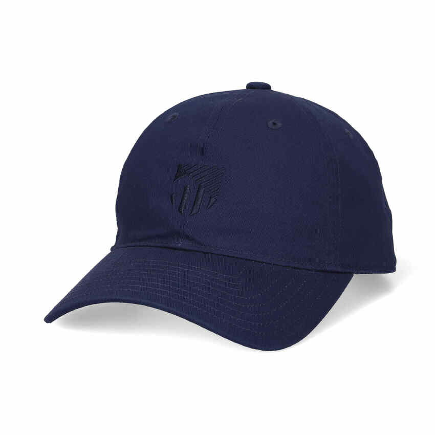 背面にはアジャスタブルストラップを備え、好みのフィット感に調整可能。フロントにはエンブレムロゴが配置され、コーディネートのポイントに。