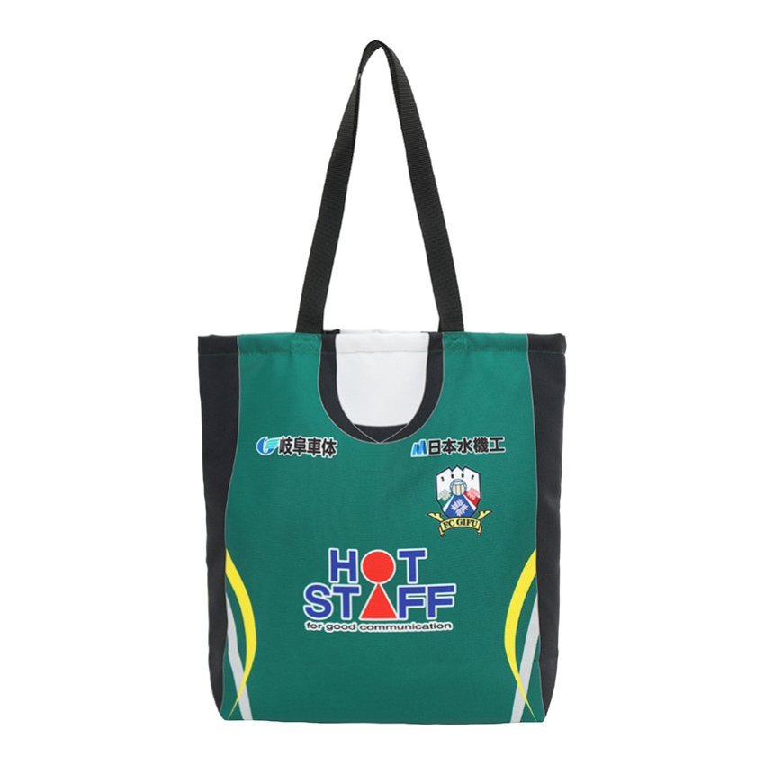FC岐阜の2026シーズンファーストユニフォームをモチーフにしたトートバッグ。ユニフォームデザインを大胆に取り入れ、観戦時はもちろん日常使いにも活躍します。収納力があり持ち運びやすく、クラブへの想いをさりげなく楽しめるアイテムです。