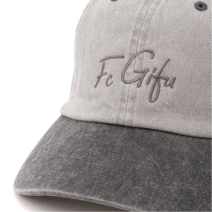トレンド感のあるオーバーダイ加工を施し、クラウンにはFC岐阜のロゴ刺繍を添えた、お洒落なキャップ。