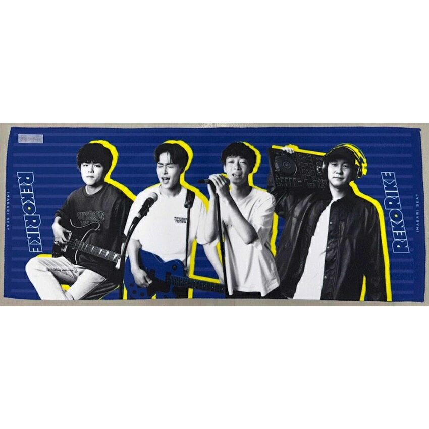 FC今治の選手が4組のアーティストになりきってビジュアルを作成した大人気企画「IMABARI BEAT」梅木、弓場、佐藤、立川の各選手で「REKORIKE」を結成!バンドタオル風のプリントフェイスタオル。