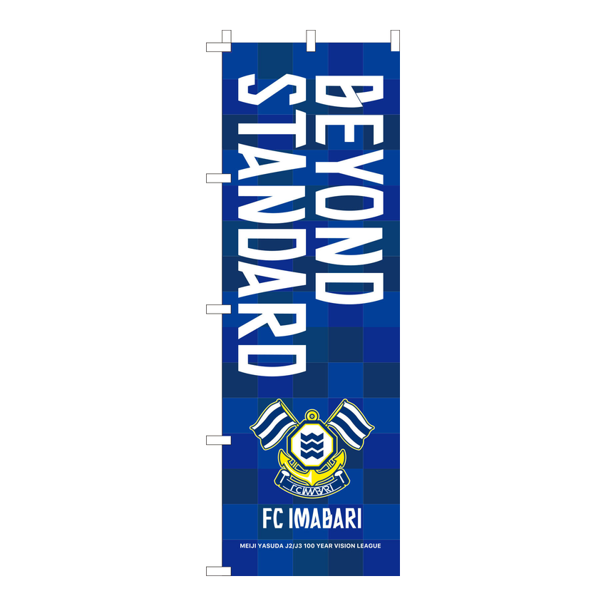 明治安田J2・J3百年構想リーグを戦うFC今治のスローガン「BEYOND STANDARD」をプリントした応援のぼり!