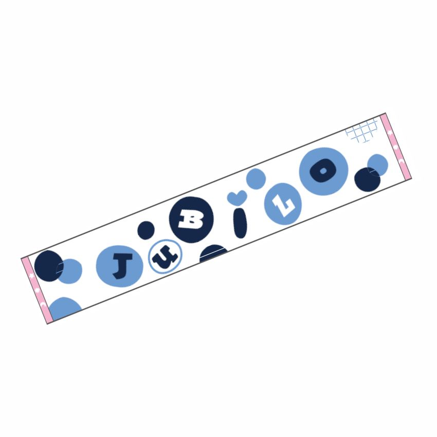 シャボン玉風のデザインにピンクカラーをあしらった、カワイイ100%のタオルマフラーです。