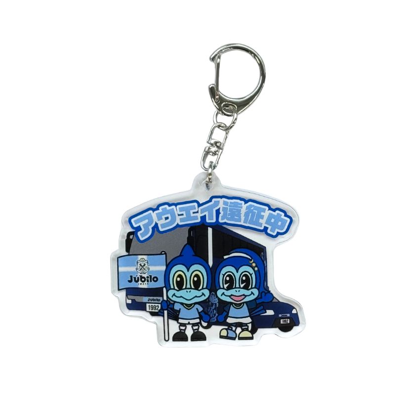 ジュビロくん、ジュビィちゃんのアウェイ遠征中デザインのアクリルキーホルダーです。