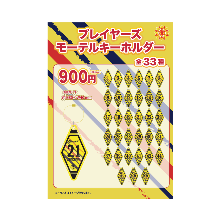 選手のネーム&ナンバーをデザインに用いたキーホルダーです。