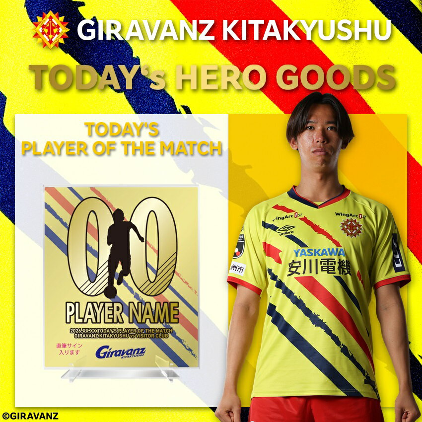 本日の勝利に貢献したTODAY'S PLAYER OF THE MATCH の記念グッズを発売、試合観戦や勝利の記念にいかがでしょうか。