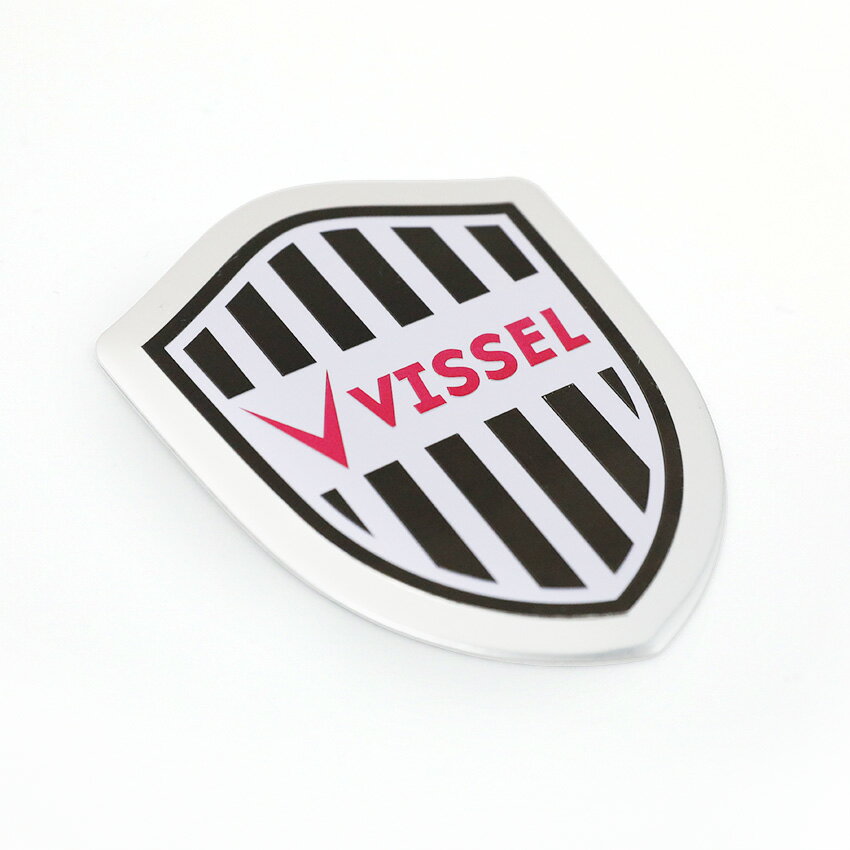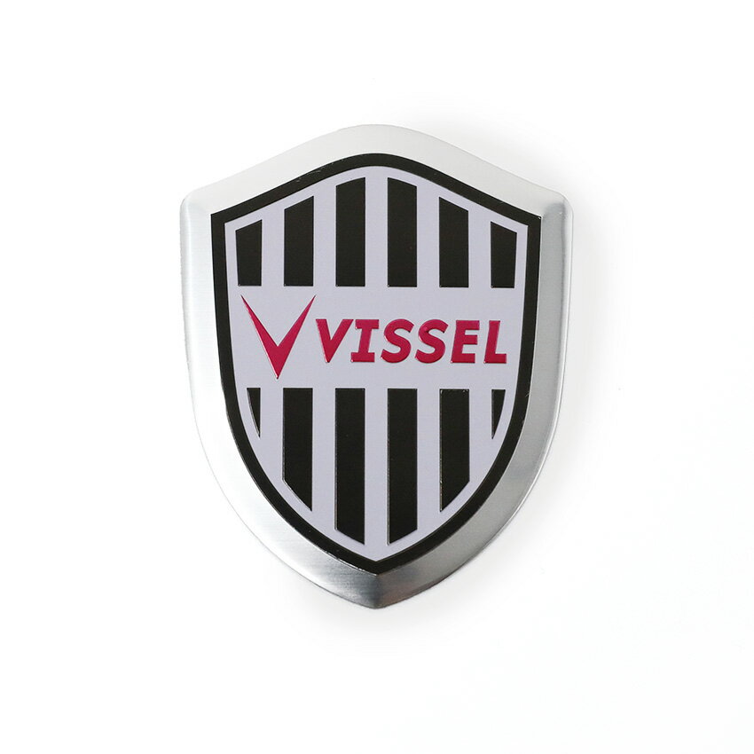 ヴィッセル神戸のエンブレムが、シャープでかっこいいアルミステッカーになりました!立体感のあるデザインと、アルミ素材ならではの輝きが、高級感を演出します。