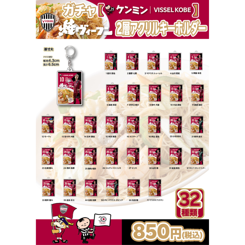 【ケンミン食品|ヴィッセル神戸】2025焼ヴィーフンがアクリルキーホルダーになって登場!