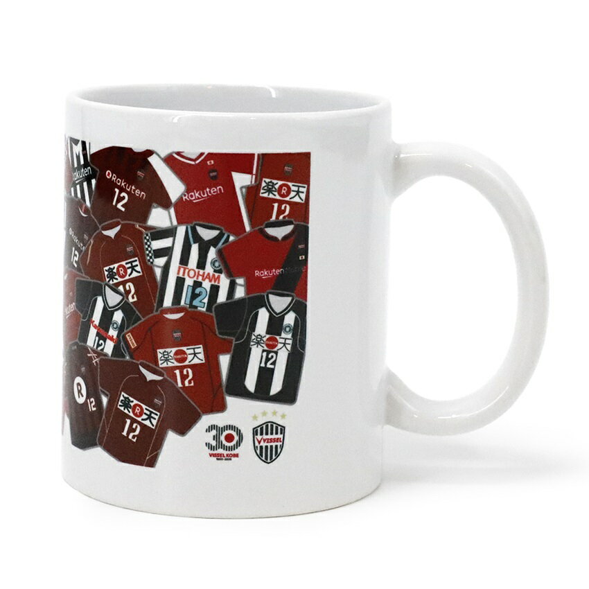 ヴィッセル神戸の輝かしい30年の歴史が詰まった、歴代ユニフォーム総柄のマグカップです。