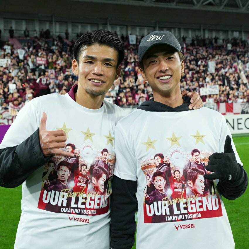 ユニフォームに輝く4つの星のうち、「2023 J1リーグ優勝」「2024 J1リーグ連覇」「2024 天皇杯優勝」を達成。ヴィッセル神戸を新たな高みへと導いてくださった吉田監督へ、最大限の感謝とリスペクトを込めてデザインしました。