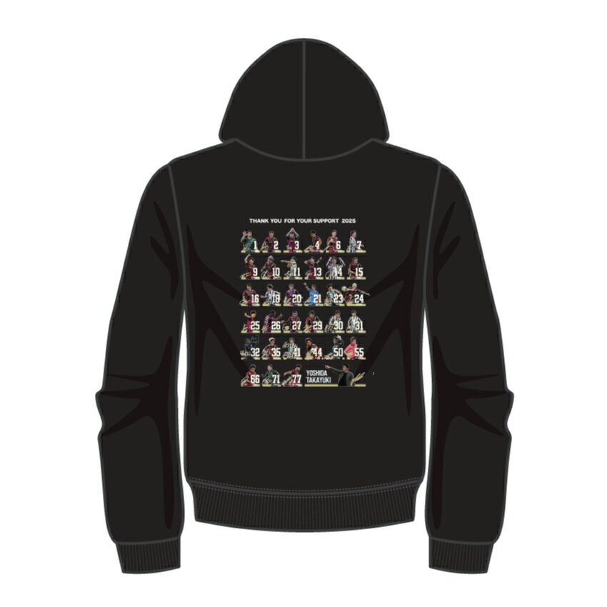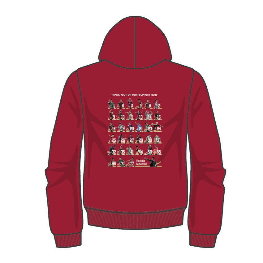 2025シーズンの感謝を込めた、特別なデザインのパーカーです。スタジアムでの防寒対策はもちろん、普段使いにも最適なアイテムです。