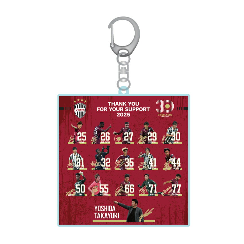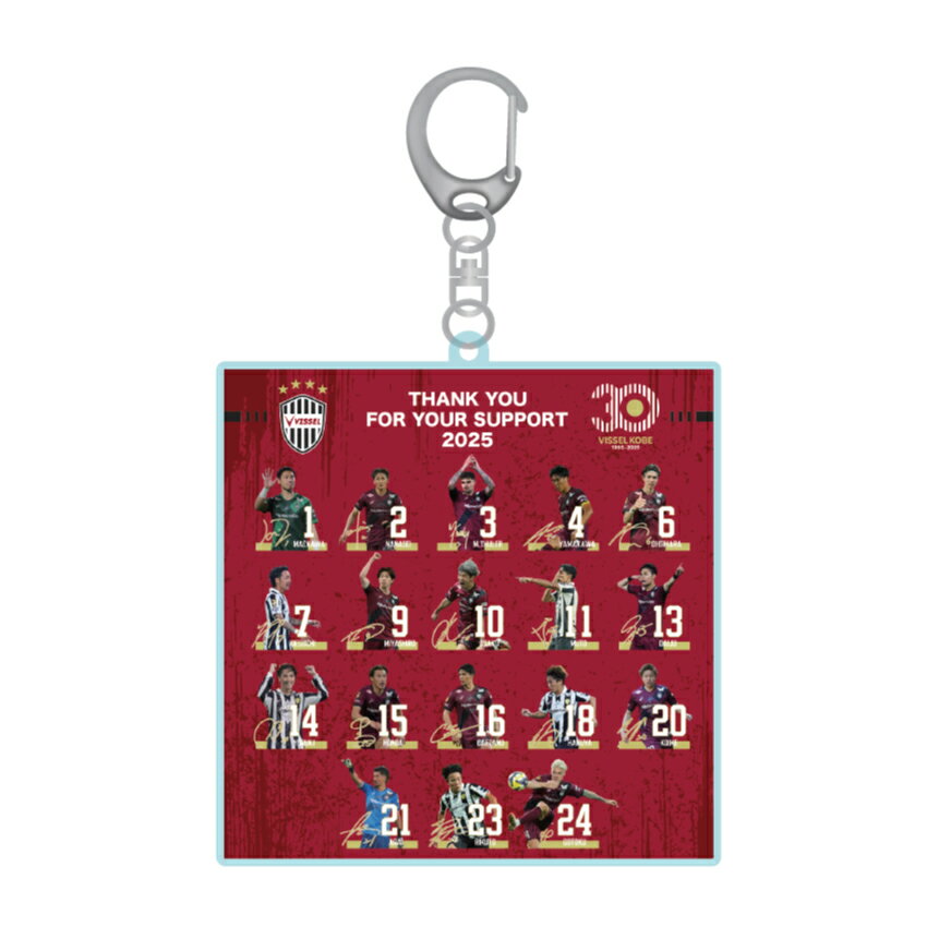 2025シーズンの感謝を込めた、特別なデザインのアクリルキーホルダーです。バッグや鍵に付けて、いつでもヴィッセル神戸を感じられるアイテムです。