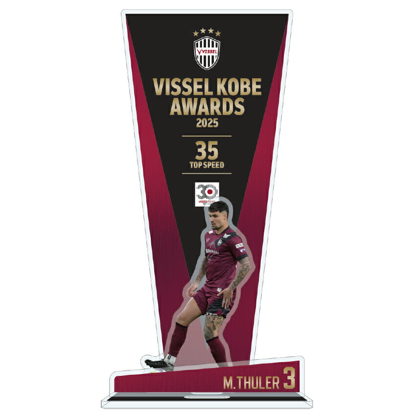 「2025 VISSEL AWARDS -TOP SPEED-」受賞の証として、トゥーレル選手の圧倒的なスピードと推進力をアクリル素材にクリアに再現しました。