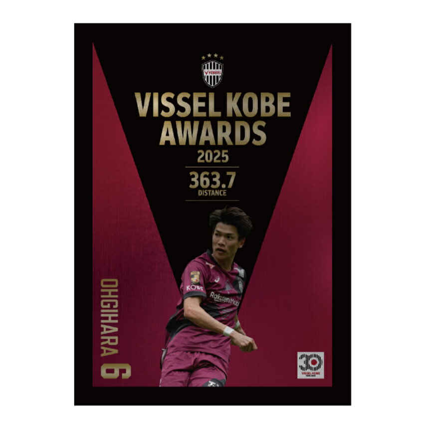 2025年のヴィッセル神戸において、出場している間の走行距離がチーム内で最も長かった扇原貴宏選手を記念したメタルグラフィです。