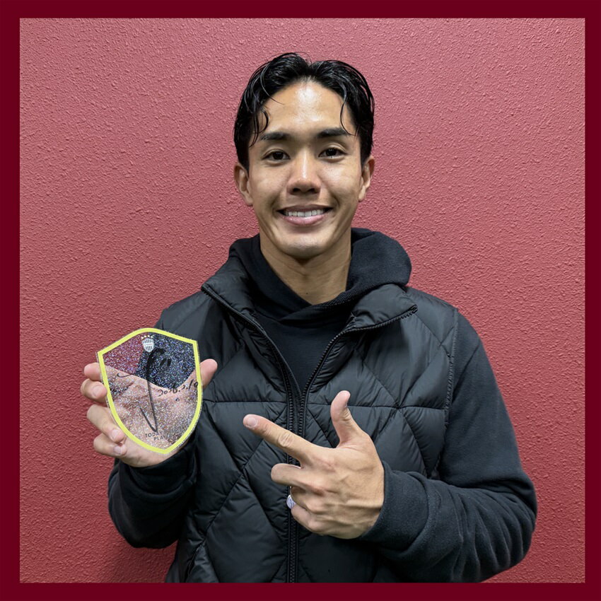 武藤選手のプレー写真がデザインされたオリジナルユニフォームに