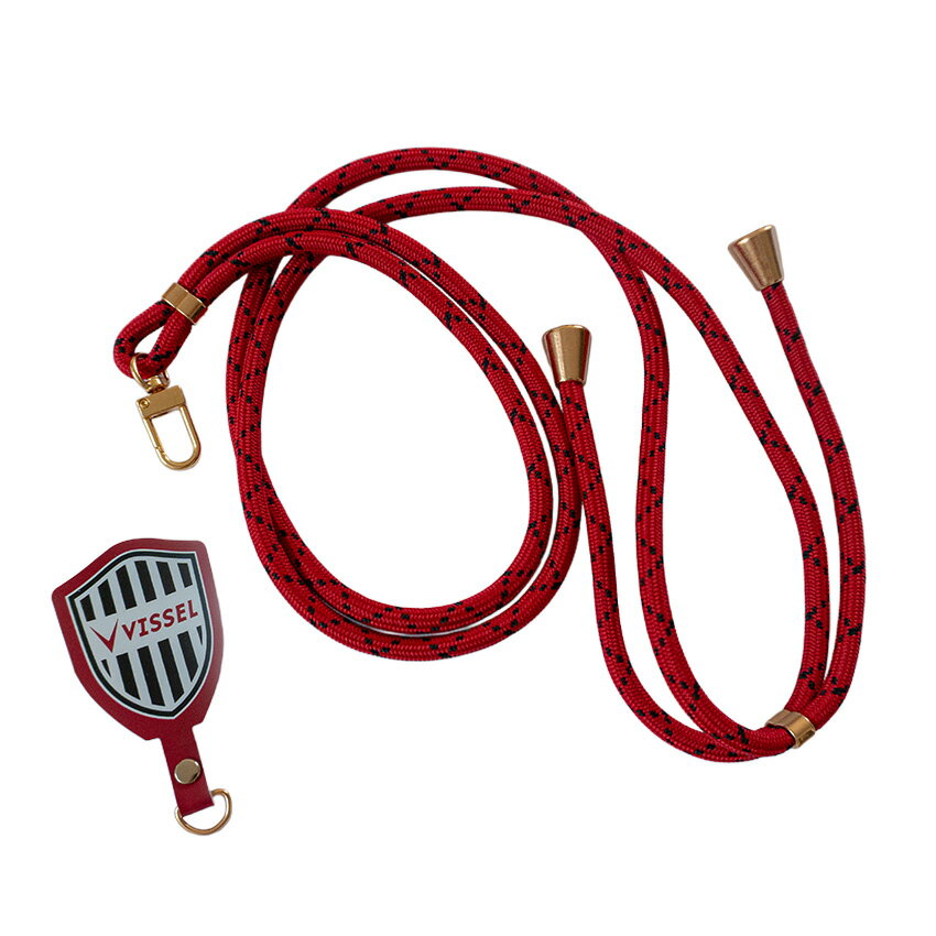 クラブカラーを基調としたショルダーストラップに、ヴィッセル神戸のエンブレムが輝く特製フォンタブのセットです。
