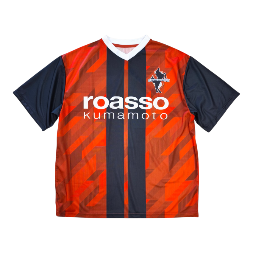 デザインは、ロアッソの赤と黒のストライプをベースに、躍動感あふれる幾何学模様を組み合わせ、力強さとスピード感を表現しています。