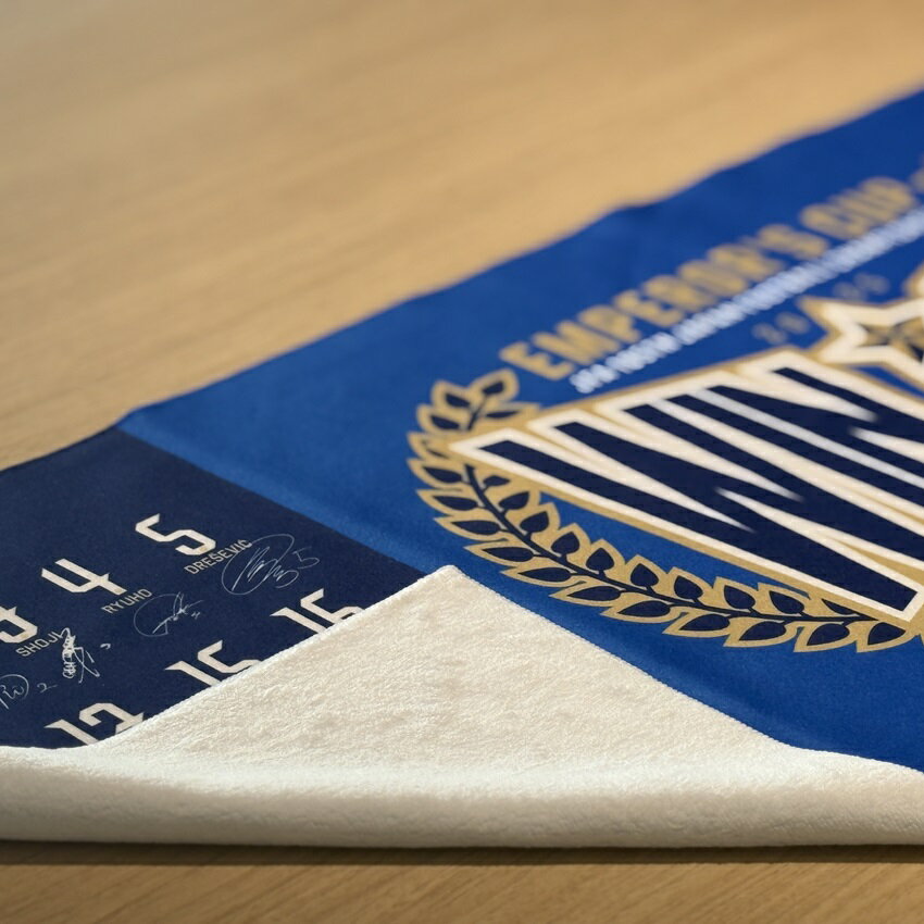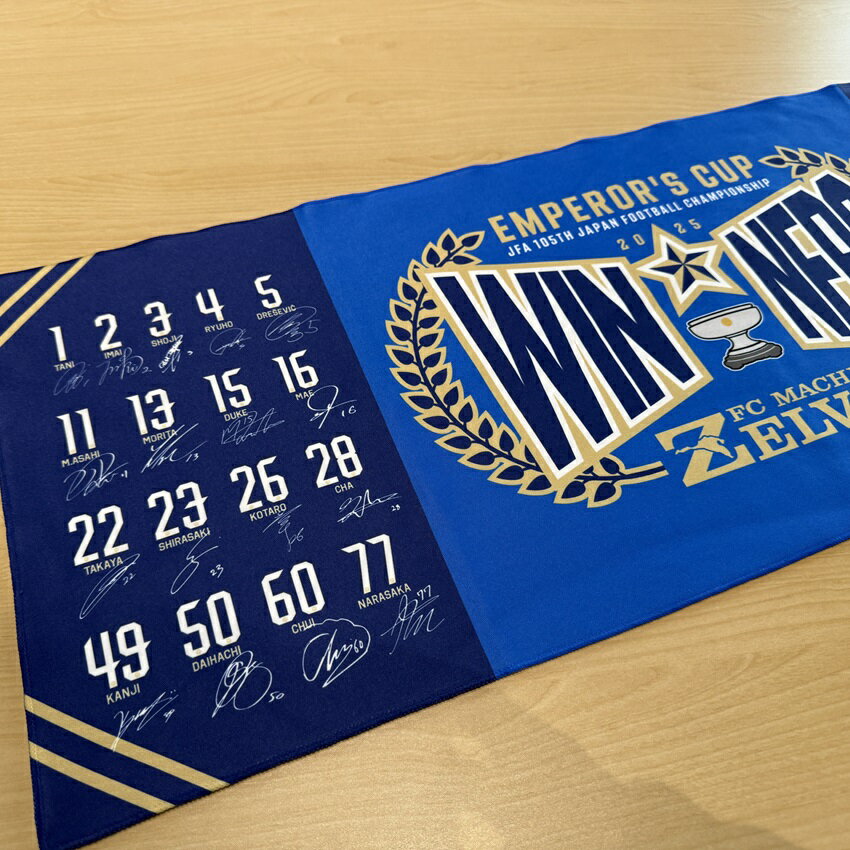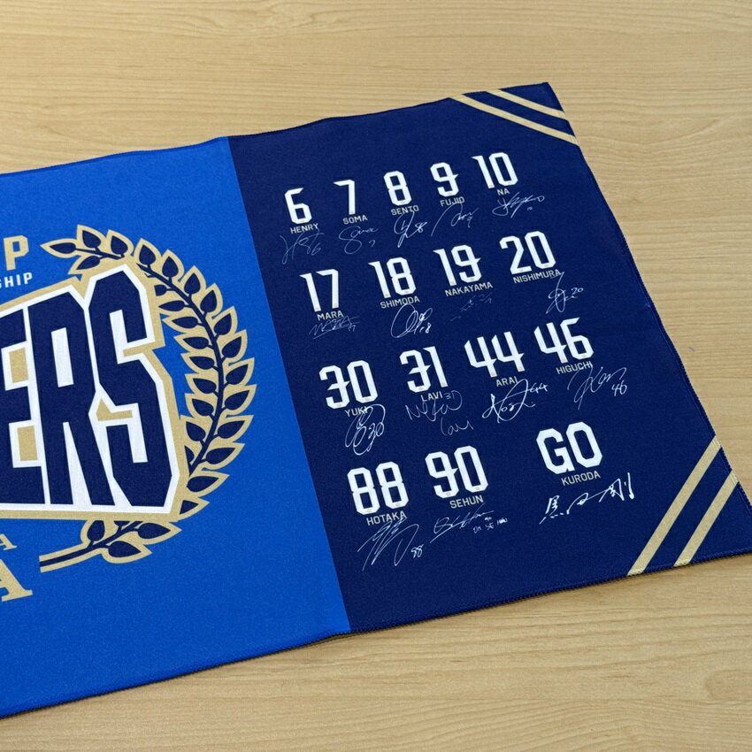 中央に優勝ロゴを大きく配置し、両サイドには優勝メンバー全選手と監督のサインをフルレイアウト。