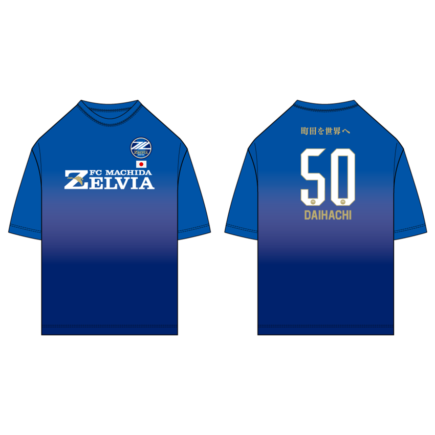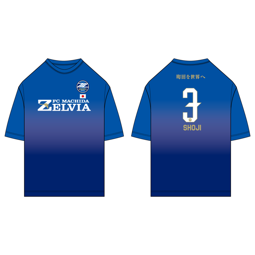 FC町田ゼルビアのロゴエンブレムと背番号がデザインされたプレーヤーズTシャツ。