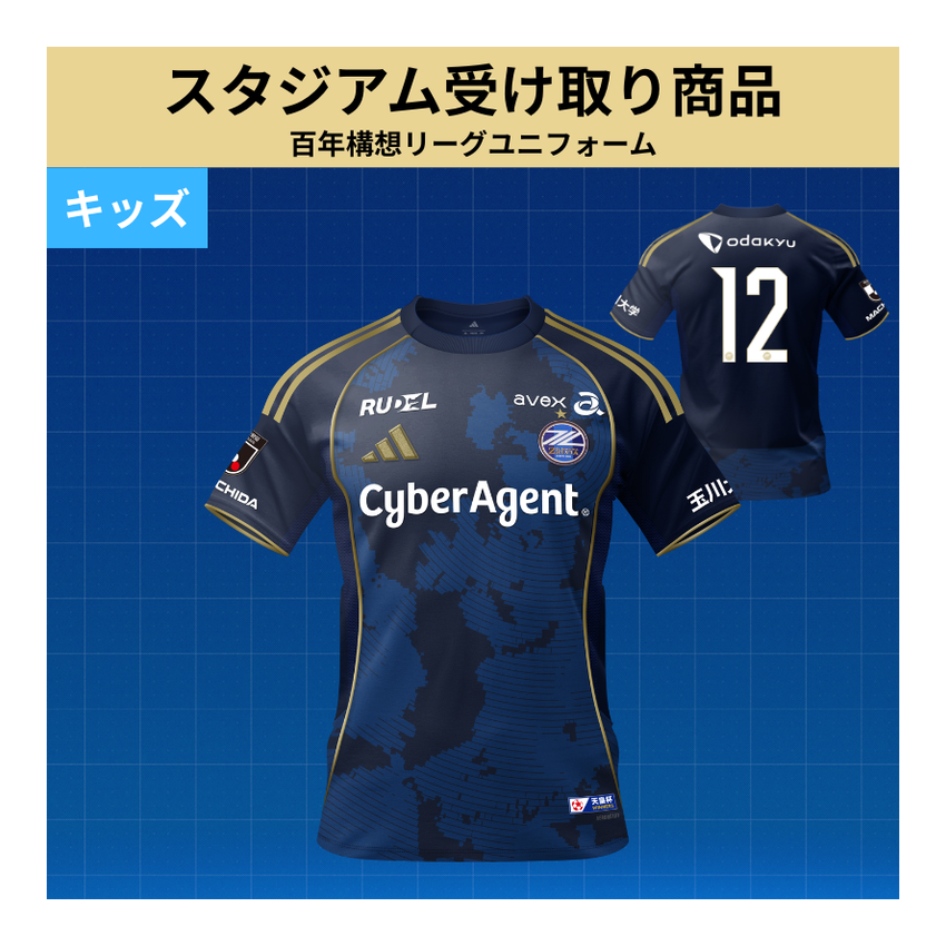 百年構想リーグのフィールドプレーヤーのキッズユニフォーム12番です。