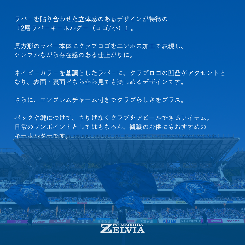 ネイビーカラーを基調としたラバーに、クラブロゴの凹凸がアクセントとなり、表面・裏面どちらから見ても楽しめるデザインです。