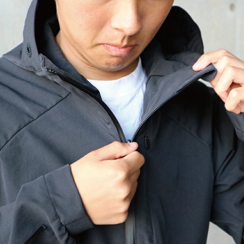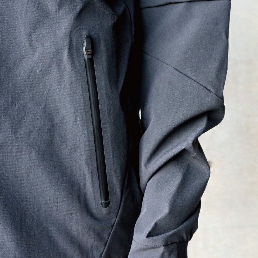 高級感あふれる生地には撥水機能が施され、衣服内を常に快適な状態に保ちます。ジップポケットには、スマートフォンや鍵などの大切な必需品を入れて持ち歩けます。