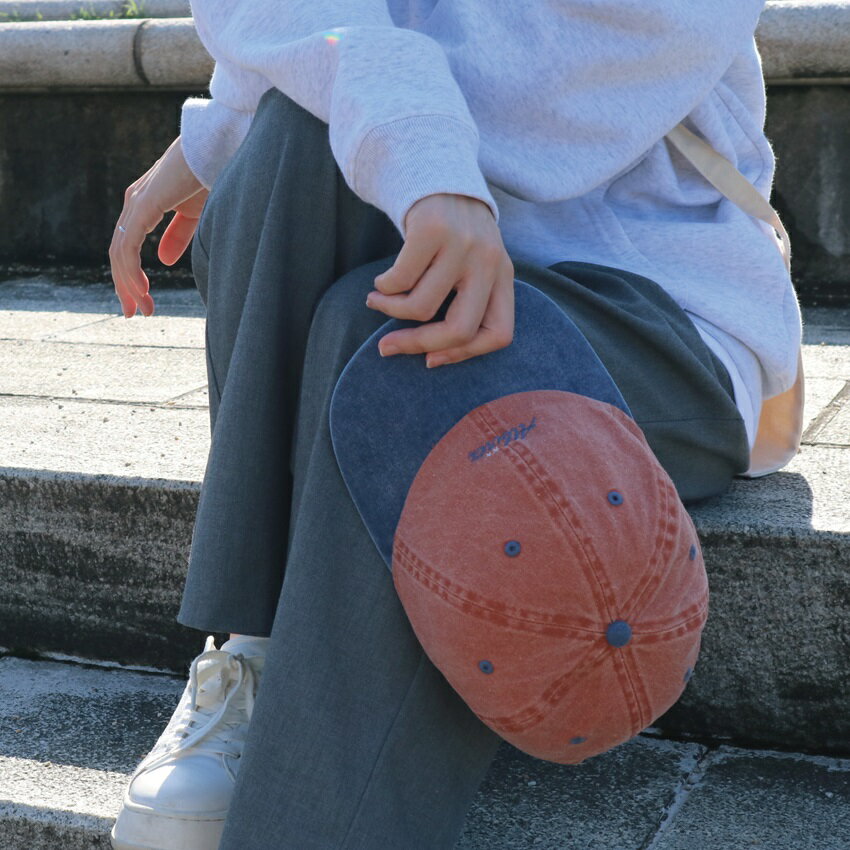 カジュアルなスタイルはもちろん、あえてシックなモノトーンコーデに合わせれば、キャップのカラーが引き立ち、洗練された印象に仕上がります。