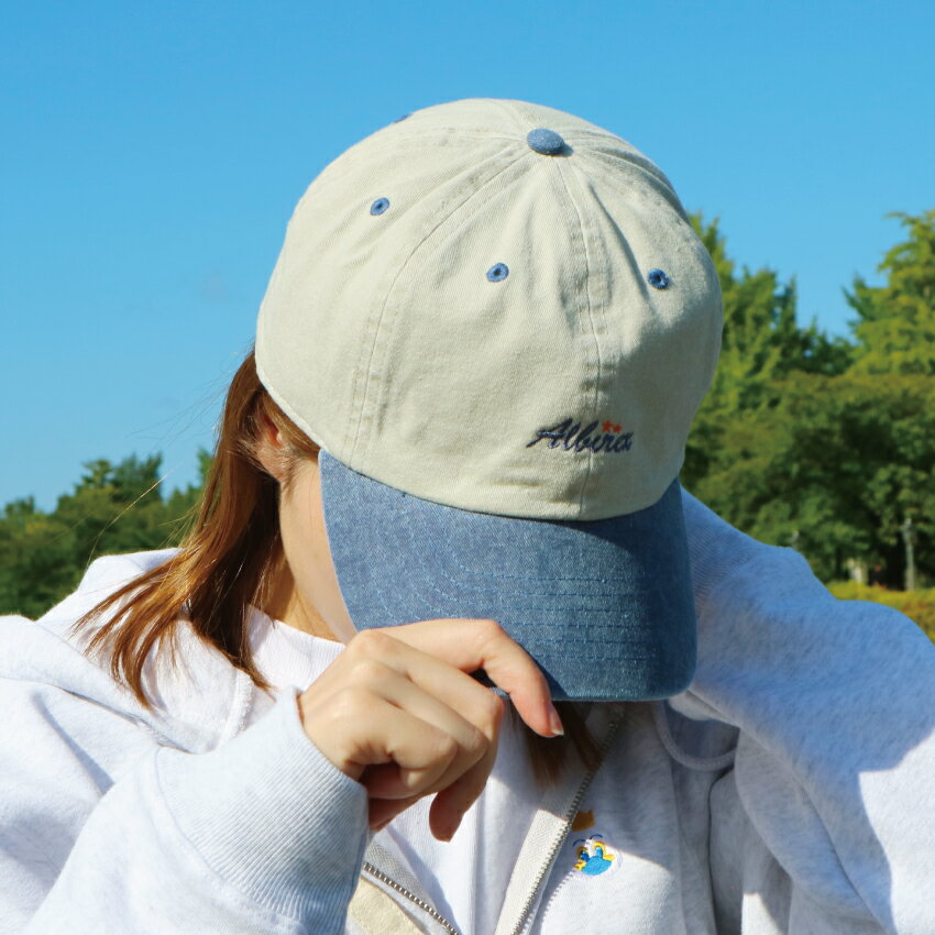 シンプルなアルビのロゴにツートーンのカラーリングで、かわいさと華やかさをプラスしたベースボールキャップ。