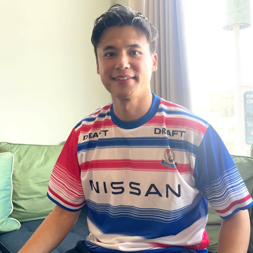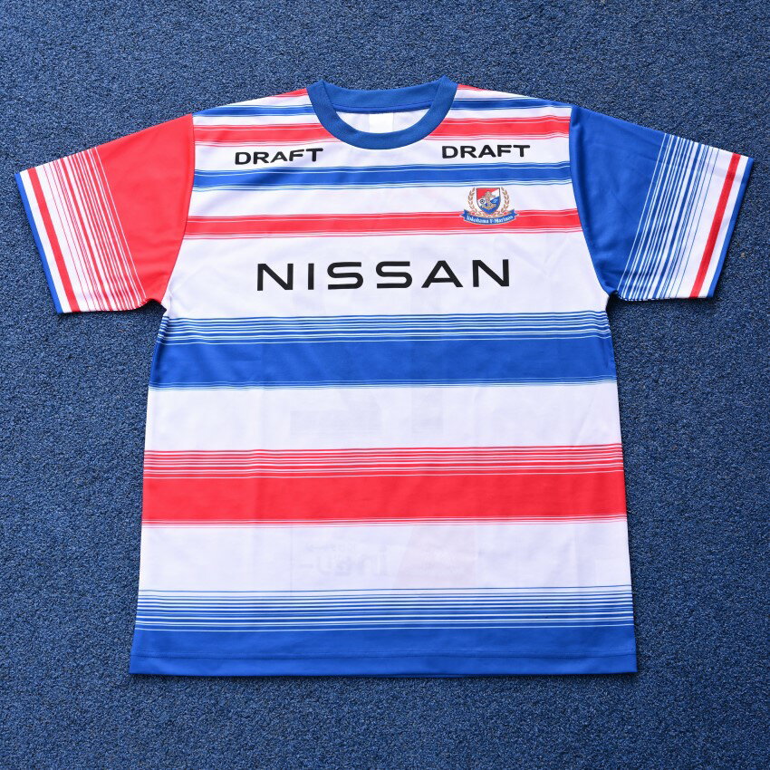 今回、横浜F・マリノス風のマリニエールとして、初夏の爽やかな青空と、ホームタウンの港町風景にぴったりの、白地に赤・青のストライプをきかせたスタイリッシュなデザインに仕上げました。