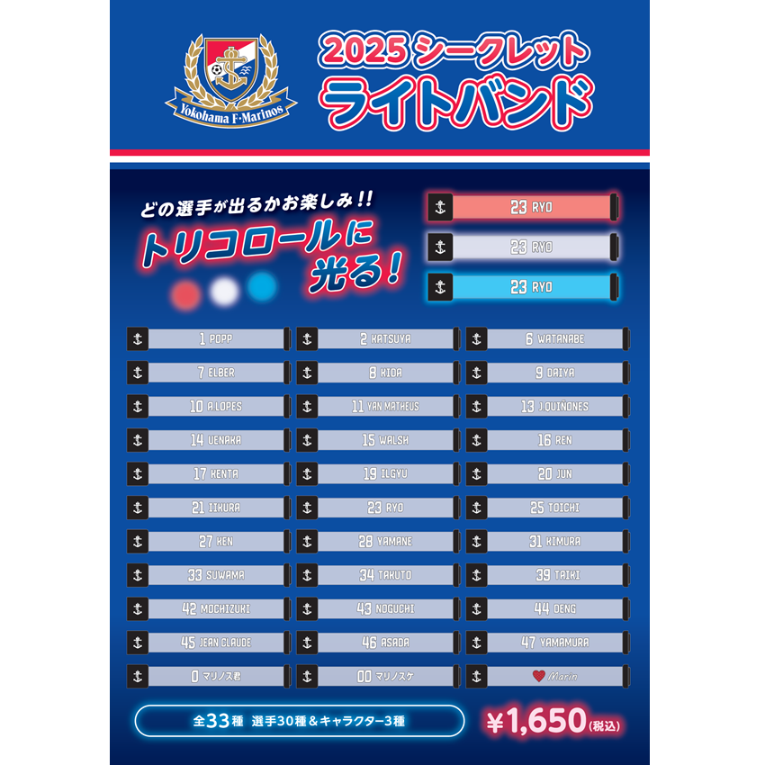 ※全33種(30選手+マリノス君・マリノスケ・マリン)