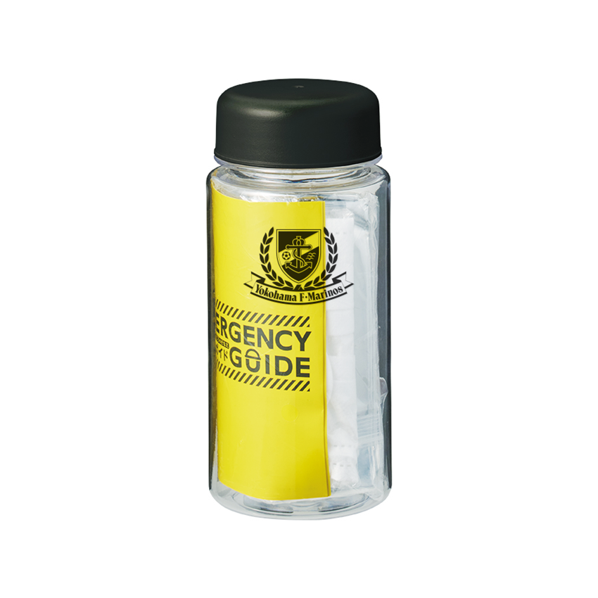 ■ボトル入り防災緊急6点セット(ボトル/ホイッスル/アルミブランケット/圧縮タオル/マスク/防災ガイド)