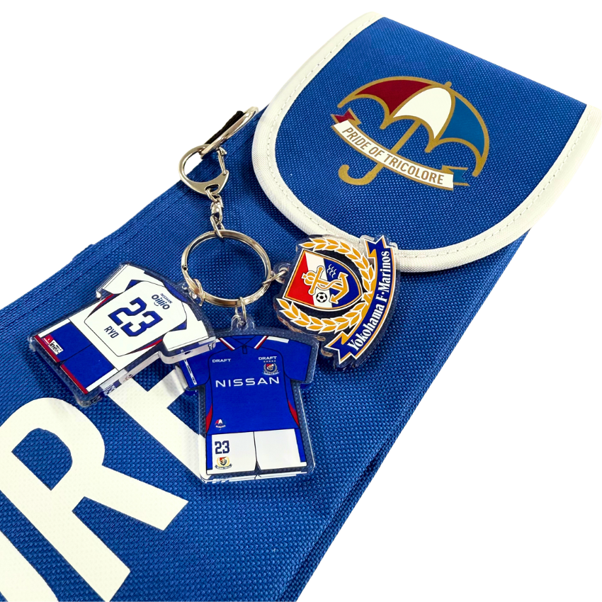 ・エンブレム、1stユニフォーム、2ndユニフォームが3連になったアクリルキーホルダー