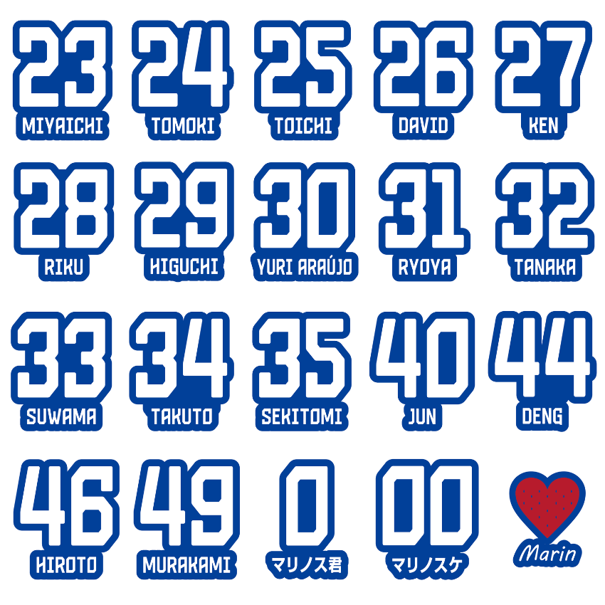 ・全35種(32選手+マリノス君・マリノスケ・マリン)